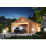 KARIBU 40mm Blockbohlengarage mit Satteldach naturbelassen 5370x3870x3090mm