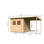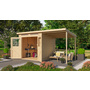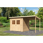 KARIBU Gerätehaus Glücksburg 4 im Set mit Anbaudach naturbelassen