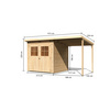 KARIBU Glücksburg 3 im Set mit Anbaudach naturbelassen 2170 x 3970 x 2200 mm